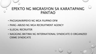 Ano ang epekto ng migrasyon sa panlipunan. B Forced Labor C Human Trafficking D Slavery. Paano ito makatutulong sa pag-unald ngbansa. Sapagkat ang Endo ay nangangahulugan na isang mapang-abuso na paggamit ng batas.