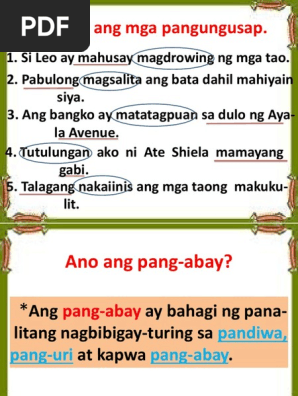 Ano ang Pang-abay at ang mga halimbawa nito. You may also visit Mahapdi in English Translate Mahapdi in English. Isa sa mga bahagi ng pananalita na kadalasan ay makikita sa isang pangungusap maliban sa pang-uri at pandiwa ay ang pang-abay.